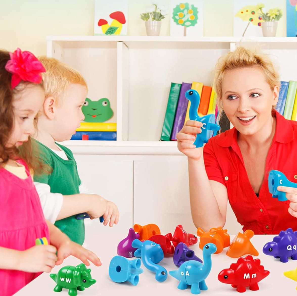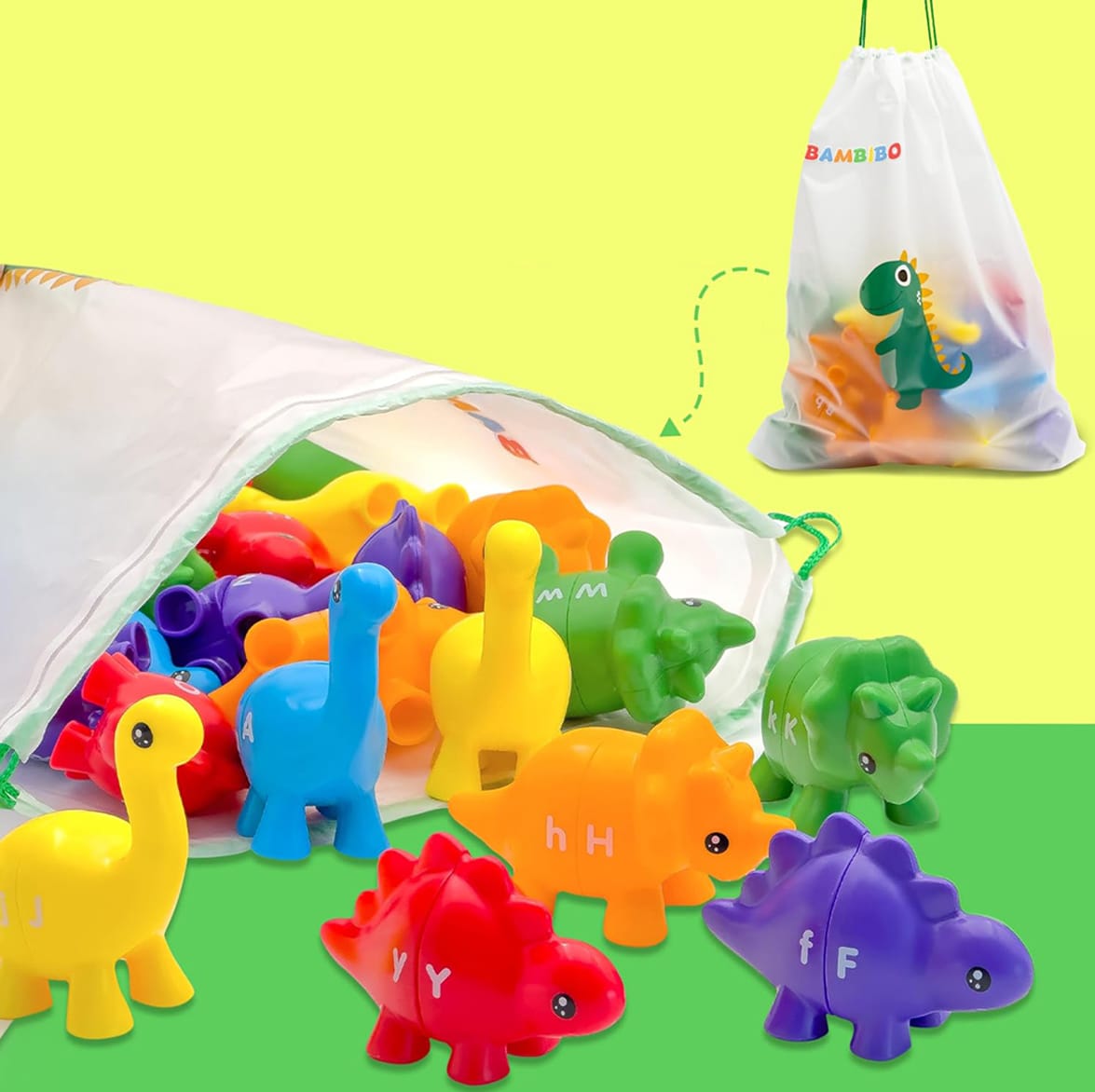 Svet dinosaurov je pre deti veľmi mystický a zaujímavý. O to viac bude zaujímavý, keď sa vaše deti pomocou hračiek naučia veľké a malé písmenká, farby, budú vedieť ich spočítať. Okrem iného tieto dinosaury pomôžu rozvíjať drobnú motoriku rúk a rôzne iné životu dôležité zručnosti a kognitívne schopnosti vašich detí.